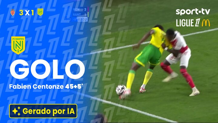 Golo! AS Monaco 3 - [1] FC Nantes 45+5'