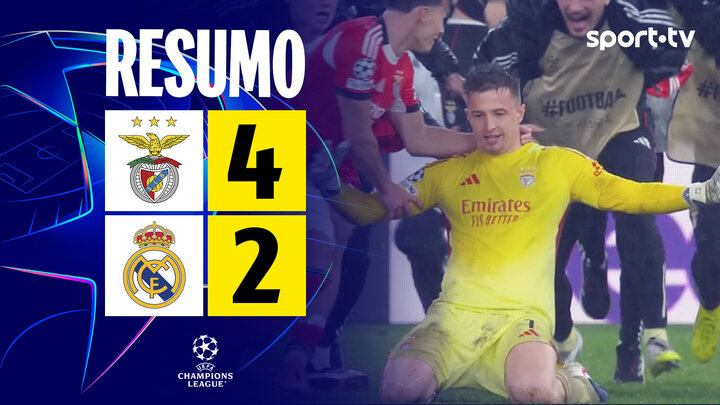 Liga Campeões (Liga - Jornada 8): Resumo Benfica 4-2 Real Madrid