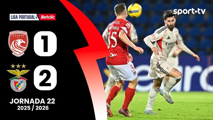 I Liga (22ªJ): Resumo Santa Clara 1-2 Benfica