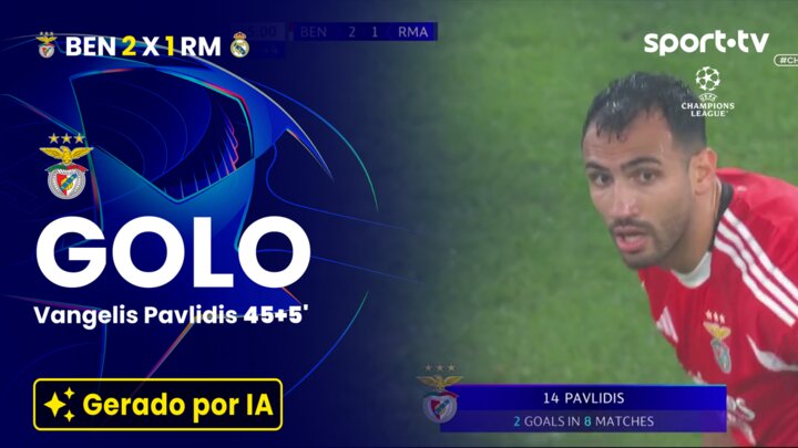 Golo! SL Benfica [2] - 1 Real Madrid 45+5'