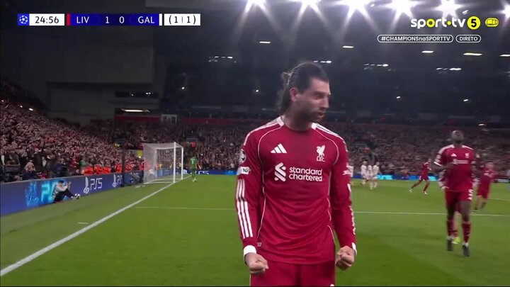 Gravenberch a fazer o terceiro dos Reds 👏